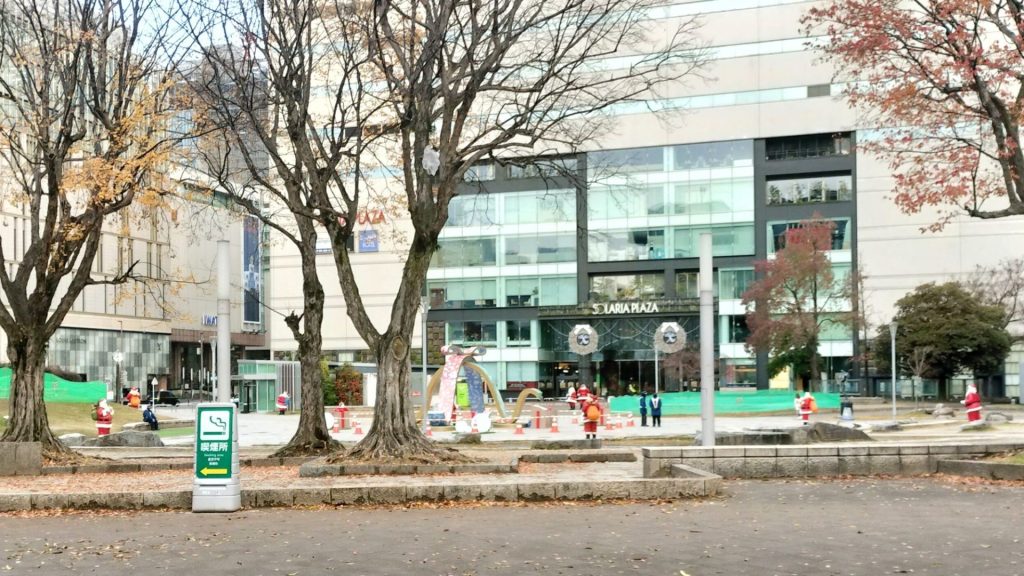 少し進むと警固公園。サンタさんがいっぱい‥