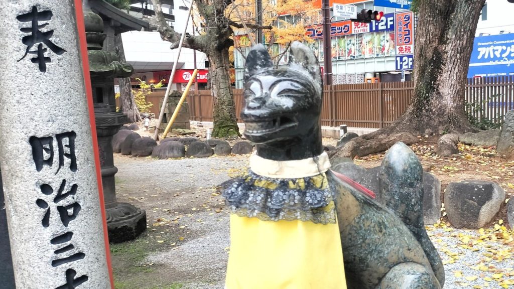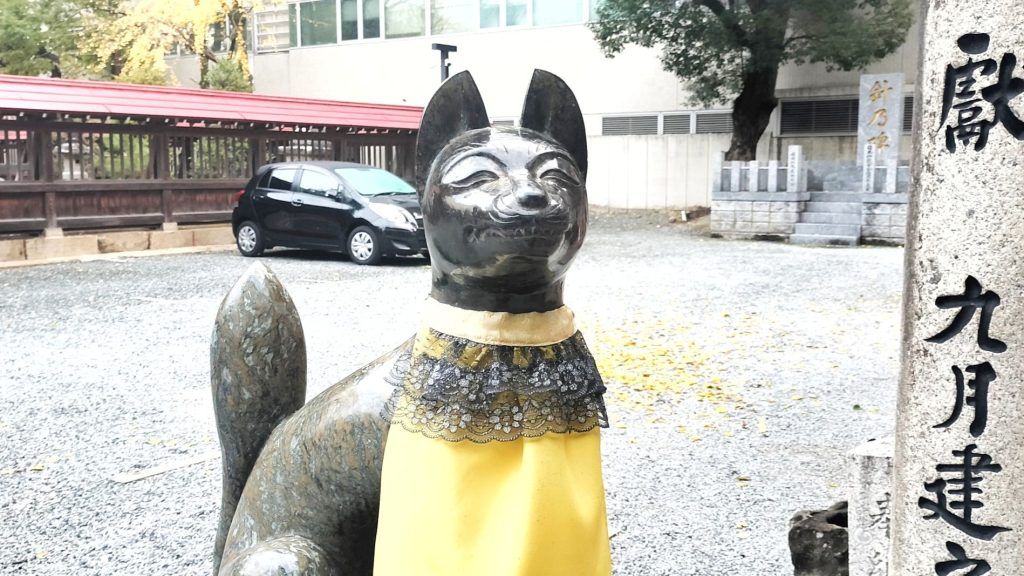 笑い狐さん。撫でるとご利益ありとのことなのでヨシヨシヨシ‥してきました